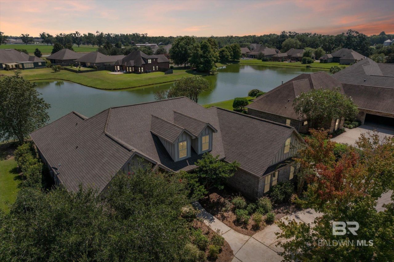 Former Model Home on the lake in Bellaton of Daphne!This 4 bed, 4.5 bath home with bonus room offers style, space, and luxurious living. The foyer opens to a formal dining room and living room with double trey ceiling, recessed lighting, wood floors, and gas fireplace.The gourmet kitchen features two pantries (one walk-in butler pantry with auto lights), granite countertops, gas range, ventless hood, two islands, and custom storage with built-ins like a wine rack and spice pull-out.The primary suite has a trey ceiling, patio access, and a spa-like bath with double vanity, jetted tub, large tile shower with dual heads, and tankless water heater. Upstairs, a bonus room with full bath makes a perfect guest suite.Extras include:Laundry with sink & cabinetsOutdoor kitchen on covered patio overlooking the lake. Oversized 3-car garage with sealed floors. Irrigation system, security system, and termite bond. A circular drive, split floor plan, and custom finishes throughout make this home truly special! Buyer to verify all information during due diligence.