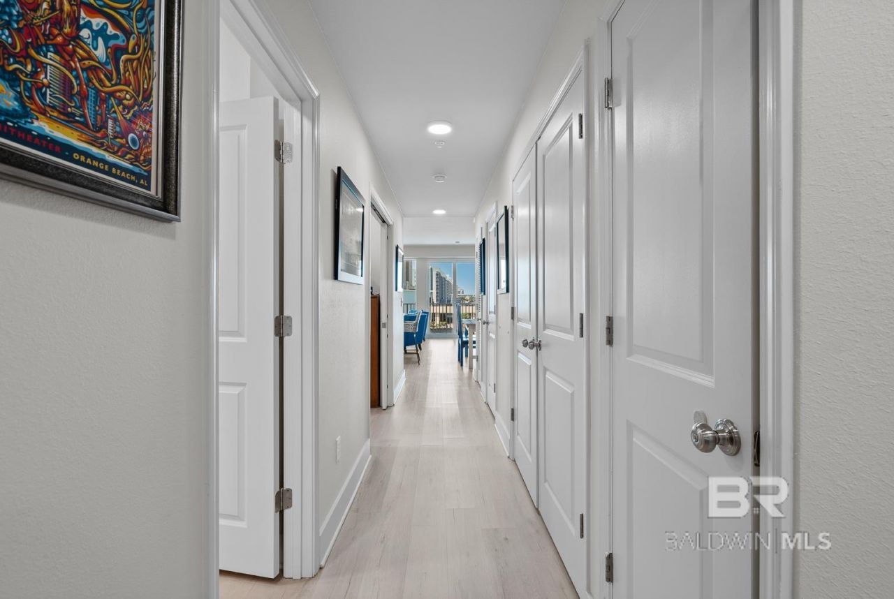 Welcome to Sea Glass, built in 2023, one of Gulf Shores' newest and nicest beachfront complexes. Nestled on 200 feet of sugar-white sand, this low-density, four-story property combines modern elegance with Gulf Coast charm, making it ideal as a lucrative rental investment or the perfect second home getaway.This unit was designed with 9-foot ceilings, Core-Tec flooring, and private lockable owner storage. The kitchens and baths feature beautiful white granite countertops, shaker-style cabinetry, subway tile backsplash, and stainless steel appliances, creating a sleek and functional space. The open-concept living area is perfect for entertaining and features a full-size sleeper sofa for additional guests. The master bedroom boasts a plush king bed, while the media room (converted into a bedroom) includes a very cozy queen bed, accommodating up to 7 guests comfortably. Sea Glass's unbeatable location places you just steps away from Gulf Place, Gulf Shores' primary public beach, where you'll find renowned venues like The Hangout and Pink Pony Pub, plus favorite spots for shopping and annual events, including the National Shrimp Festival and Hangout Music Fest. Because of its size and location, this unit could be a lucrative rental investment or a cozy second home. Please reach out if you would like to know more about its rental history and potential. Buyer to verify all information during due diligence.
